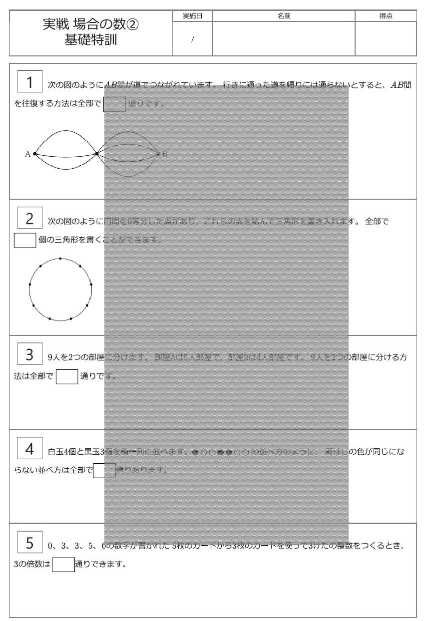 場合の数が苦手な型は「場合の数①」から